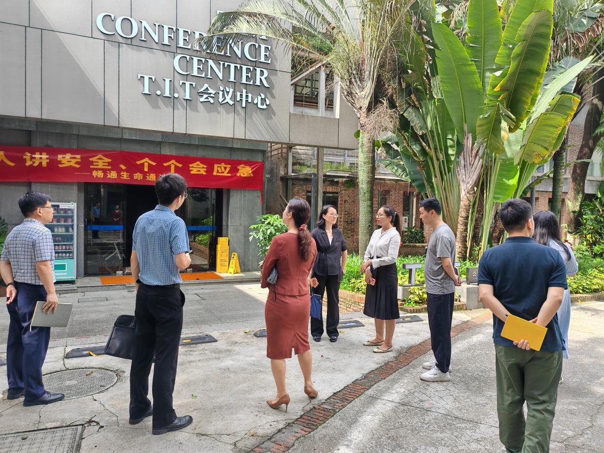 pa捕鱼网官网一行参观位于广州第二棉纺厂旧址由旧厂房活化利用改造而成的T.I.T智慧园,了解旧厂房活化利用、产业导入、业态布局以及园区配套服务能力,感受改造后工业时尚和花园式风格的办公场地。